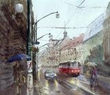 Ранний набитый трамвайный маршрут,